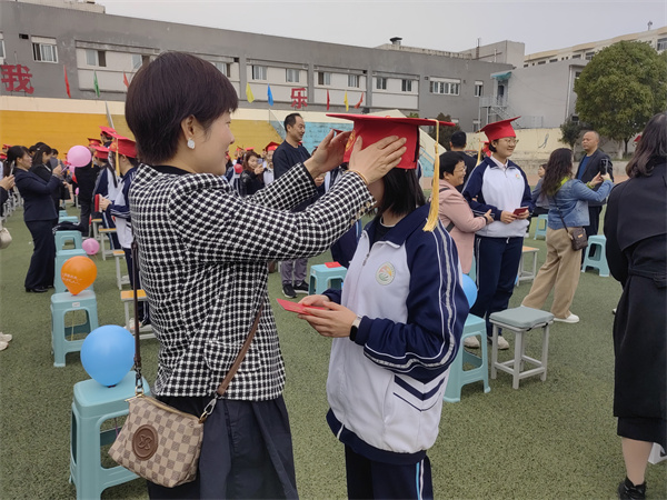 古语云,冠者,礼之始也。加冠礼意味着同学们正式成为一名成年人,当践行孝悌忠信的德行,承担起对个体人生、家庭社会乃至对国家的责任和义务。仪式上,校领导、老师、家长分别为学生加冠拨穗,并赠送《宪法》。同学们向父母与老师深深鞠躬,与他们深情拥抱,对生命中的领路人表达浓浓谢意。