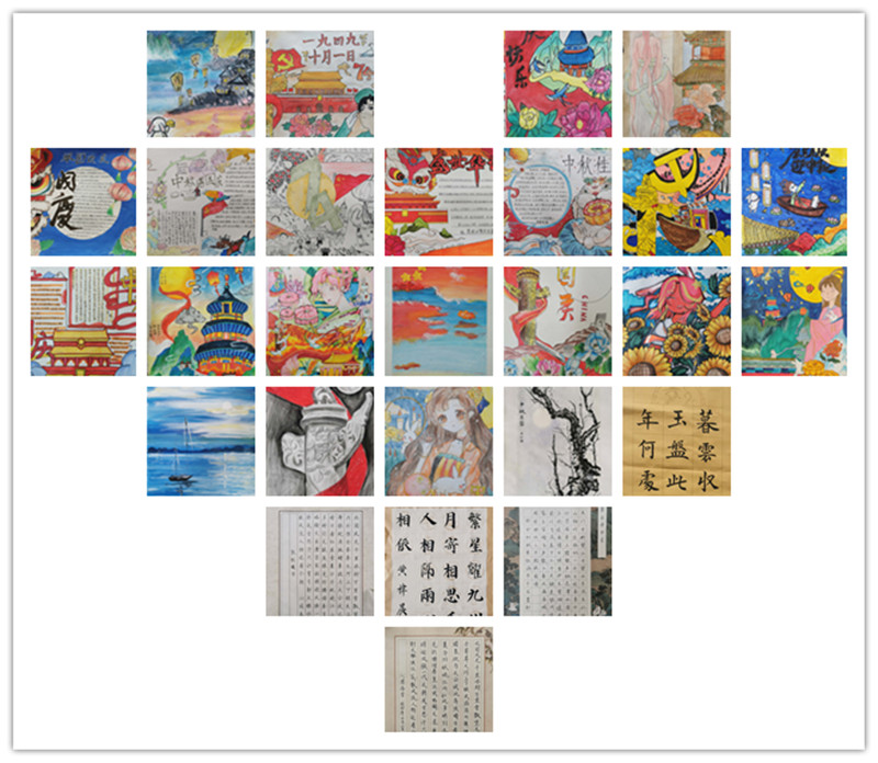 一轮明月寄深情,万里河山披锦绣。为庆祝中华人民共和国成立74周年,进一步弘扬爱国主义精神,增强学生的民族自豪感,近日,我校举办了以“喜迎中秋国庆 共筑美好未来”为主题的书画、手抄报展示活动,以实际行动向祖国母亲献礼。