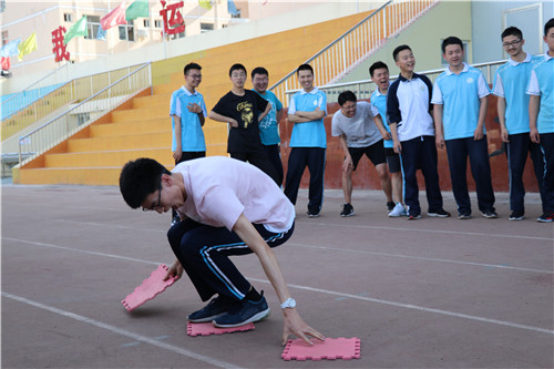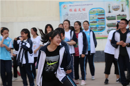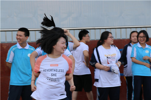 运动会上,各班同学在“背球接力赛”“摸石头过河”“肺活量大比拼”等多个集趣味性和竞技性于一体的项目中展开比赛。同学们相互配合、团结一心,用智慧、决心征服游戏的困难;用高度的班级凝聚力完成一项项挑战;用欢声笑语赶走平日里的压力负担,用热情展现青春风采。整个操场,口号声、掌声欢笑声此起彼伏,高三师生徜徉在欢乐的海洋中。