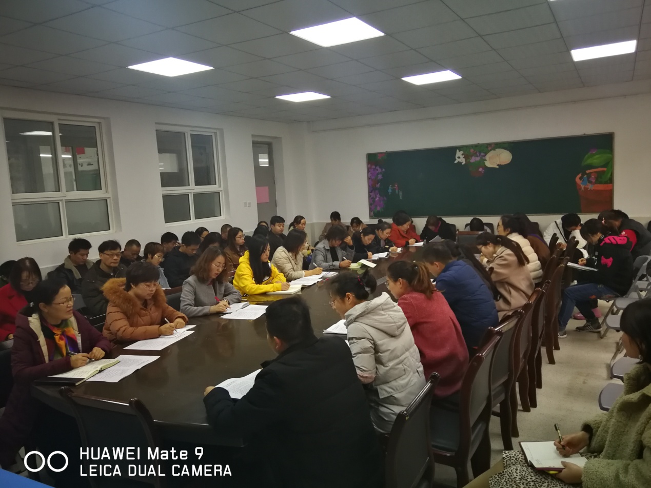 各年级组长就«陕西省中小学教师违反职业道德行为处理实施细则(试行)的通知»等文件作了解读,希望教师们提高认识,遵守职业道德标准、职业道德原则、职业道德规范,树立为人师表的典范,尽心尽力的做好本职工作,在教书育人岗位上为党和人民事业做出新的更大的贡献。