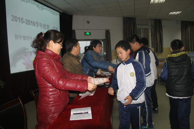 为更好地做好学生管理和教育工作,激发学生自主管理的主动性和积极性,2016年1月4日,我校初中部在多功能厅召开学生自主管理总结暨表彰大会。大会由初中部学生会主席任纪元主持,副校长张书民、政教处主任王忠俊、年级组长邓莎莎、李玉霞、方凯出席大会。