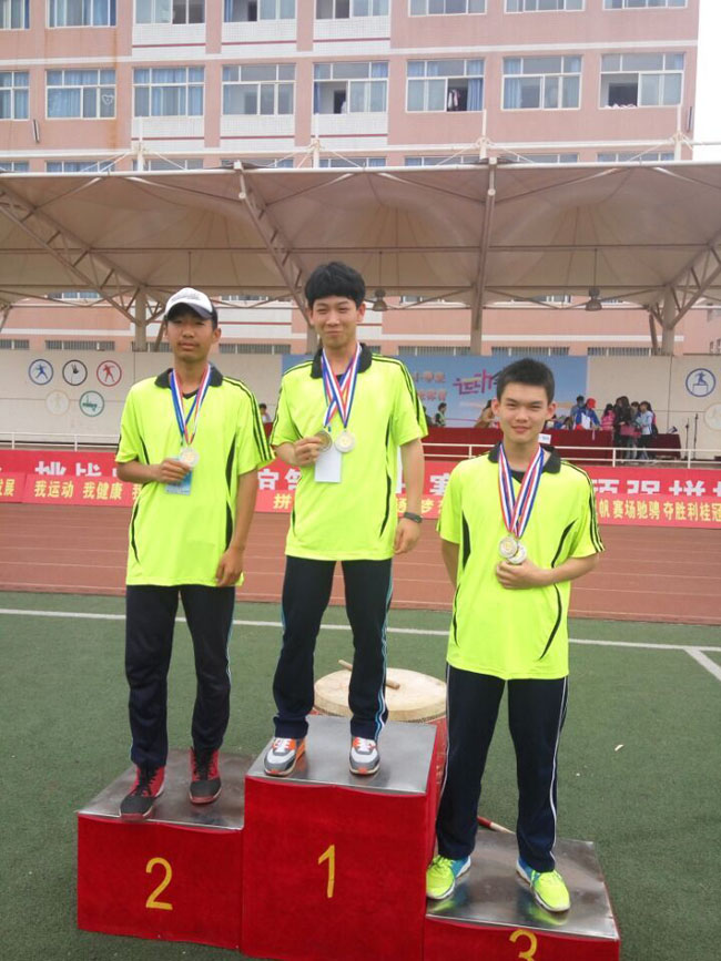 在本届运动会上,我校运动员奋勇拼搏,团结协作,展现了昂扬的斗志和良好的精神风貌,取得了初中组团体总分第二名、高中组团体总分第二名的好成绩。其中,高中组获金牌2枚,银牌8枚,铜牌9枚;初中组摘得金牌2枚,银牌7枚,铜牌9枚。在乒乓球比赛中,高中组、初中组的男子、女子冠军被我校包揽。弓强获初中男子组冠军,仲卓然获初中女子组冠军;殷文仟获初中男子组亚军。琚大江获高中男子组冠军,李思睿获高中女子组冠军;张罡睿获高中男子组亚军,郭锦拧获高中女子组亚军。另有3位同学打破3项区运会纪录,许曼打破了高中女子1500米的纪录,闫武庆打破高中男子1500米纪录,杜雨革打破初中女子三项全能纪录。