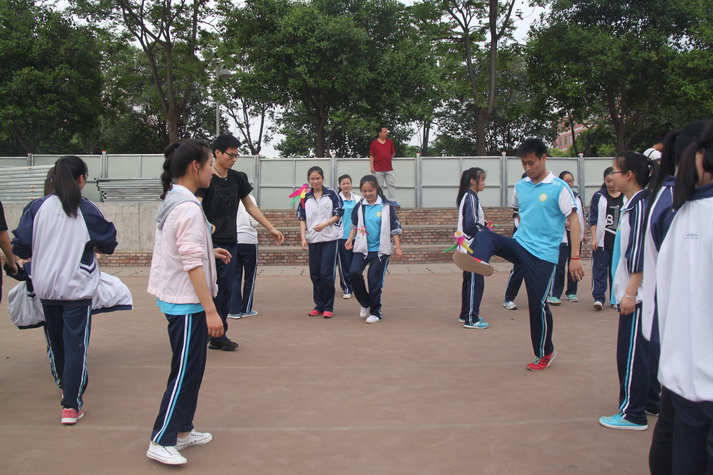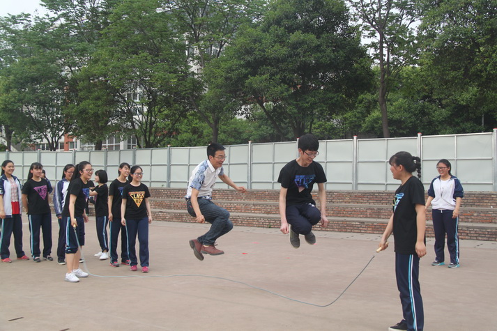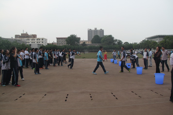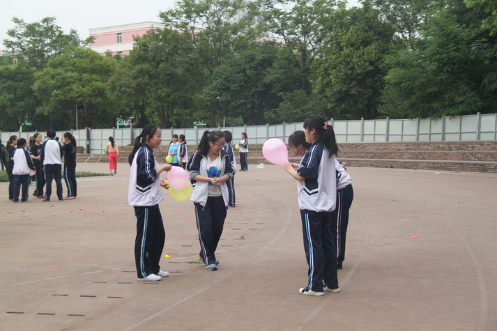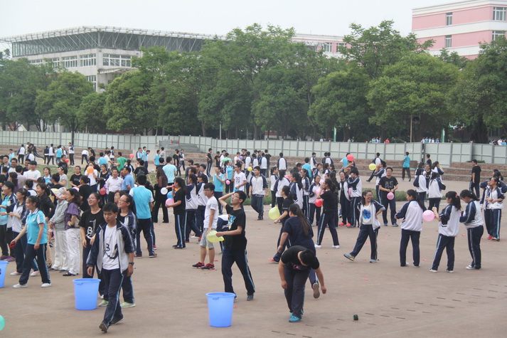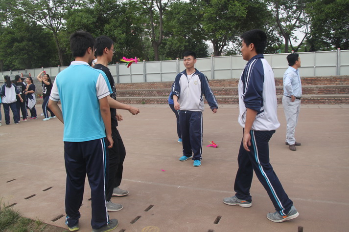 第七节课后高三师生准时在操场集合,先由担任裁判的学校体育组老师宣布活动规则以及比赛项目。有沙包掷准、吹气球、跳大绳、踢毽子、足球射小门、篮球运球等项目,一人可参加多项。