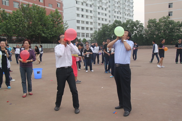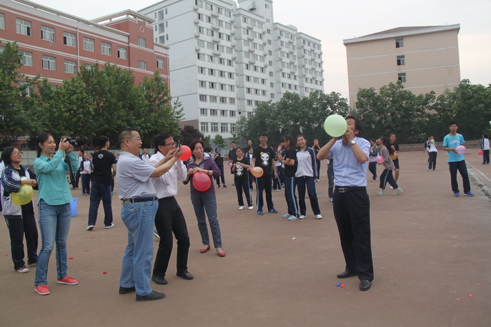 紧接着裁判员老师宣布比赛开始,整个操场便成了一片欢乐的海洋。沙包投中的欢快叫声,跳绳计数声,各项活动中同学的加油声,还有学生和老师一起比赛的笑声。最热闹的是吹气球,瞧大家一个个鼓起腮帮使劲吹气,气球渐渐变大,大家脸上的神色却也变得有些担心了,果然,只听“砰”的一声,气球吹爆了,大家都笑成一团。李筱英书记、韩党卫副校长、张书民副校长、王旭主任、徐恒明副主任等领导也都情不自禁的加入到学生活动的行列,吸引了众多学生的关注,他们和学生一起吹气球,比赛谁吹的更大,一起踩气球,一起欢笑。整个运动会始终在热烈欢快的气氛中进行。运动会结束,许多学生还意犹未尽,仍沉浸在活动带来的快乐当中。
