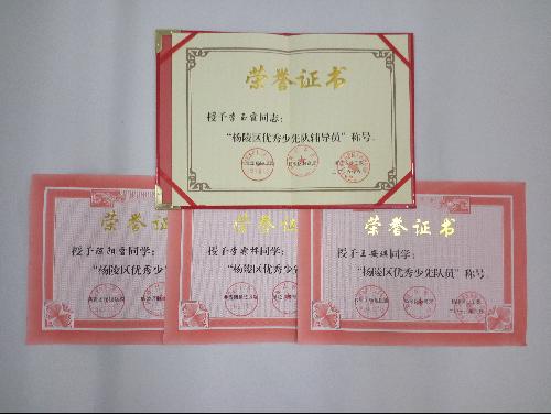 在共青团杨陵区委、杨陵区教育局、杨陵区少工委联合开展的2016年度杨陵区优秀少先队员和优秀少先队辅导员评选表彰活动中,我校李玉霞老师被授予“杨陵区优秀少先队辅导员”称号,初一年级王安琪李霖桦同学、初二年级陈阳雪同学被授予“杨陵区优秀少先队员”称号。