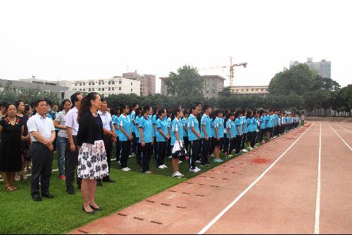 升旗仪式后,王常劳校长向全校师生致辞。他对新同学的到来表示欢迎。在回顾了我校过去一学年的成绩后,他强调,在新的学年,我校高点定位,改革创新,确定了更高的发展目标。为实现目标,全体教职员工必须爱岗敬业,强化岗位责任意识和质量意识;全体同学要树立目标,遵守纪律,争做有文化、讲文明、守纪律的优秀学生。他还向毕业班提出了希望,希望他们树立信心,科学备考,顽强拼搏,交一份优秀的答卷。