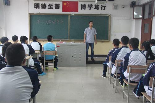 9月17日—9月18日,高三进行了第一次练考,成绩出来后各班通过各种方式对本次练考进行了总结与反思,老师们普遍感到学生学习的积极性还不够高,为了进一步调动学生复课的自觉性,政教处和年级组商议对高三学生分四个层次进行动员,理科重点班(高三1班)、理科实验班(高三2班、3班、4班、5班)、理科普通班(高三6班、7班)、文科班(高三8班、9班),班主任负责组织,教研室主任陈军老师、政教处副主任徐恒明老师及高三年级组长李恩良老师参加了动员会,并作重要动员,一股浓厚的复课氛围正全年级悄然形成。