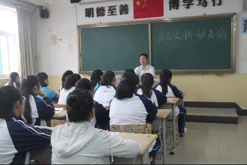 会后学生们热情高涨,他们学习的动力被引导了出来,很多学生对明年的高考充满了信心,尤其是文科班学生,他们非常激动,会后在班主任孙全民、朱秦立老师的倡议下:学生早晨提前二十分钟(7点10分)到校,背诵文综考点,争分夺秒备战17年高考!