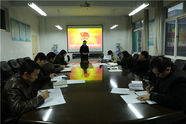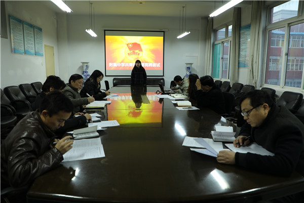 为了使此次竞聘工作取得圆满成功,会前附属中学党总支做了充分的准备工作。学校专门成立了竞聘选拔评审委员会,评委由附属中学党总支书记李筱英、校长王常劳、总支委员韩党卫、张书民、李华、寇建国、高健和徐恒明等同志担任。附属中学明确规定了此次竞聘选拔报名条件和要求,并严格执行资格审查、面试抽签及竞聘演讲、随机抽题、评委提问等竞聘程序。经过附中党总支、各支部的广泛动员,广大青年教师热情关注并积极参与。共有7名符合条件的报名者参加竞聘。