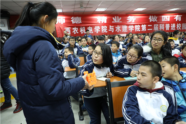 11月24日,农科大机电学院团工委书记马香丽老师带领学生为我校初中部学生进行了一场精彩的科技成果展示活动。