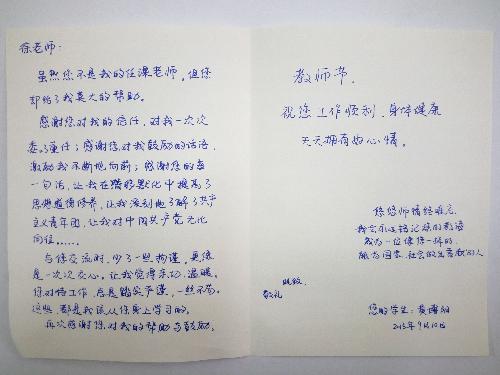 学生写给徐老师的教师节贺卡