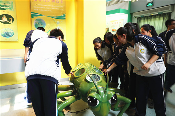 同学们分别参观了动物博物馆、昆虫博物馆、土壤博物馆、植物博物馆和农业历史博物馆及西北农林科技大学校史馆等。同学们听着工作人员的讲解,仔细观察着昆虫、植物、动物标本,感慨地说:“生物老师在课堂上讲解的知识点,没想到在这里得到了一一印证。”苏和平老师在博览园中利用观测仪给同学们现场讲解了干湿度对于环境的影响变化的产生机理,同学们笑着说:“老师,这次我真的明白了!”形态各异的昆虫、珍奇美丽的动物、远古的农耕文化。无不令同学们感到美妙和惊叹。博览园中金黄的金丝桃、美丽的金银花、累累果实的枇杷…都让同学们沉醉其间,流连忘返。高三8班的何浩东同学说:“博览园真的很有意思,看到了很多奇妙的标本。更重要的是,让我对生物科学有了新的认识。”教务处王旭主任感慨道:“身为农林科大附中的一名教师,平时忙于教学,今天还是第一次走进博览园,不仅感受了自然科学的奇妙,更为西北农林科技大学而感到自豪!”