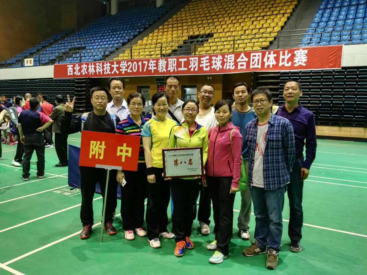 5月14日—18日,西北农林科技大学2017年教职工羽毛球混合团体比赛在南校区体育馆举行。本次比赛共有26支代表队参赛,经过激烈角逐,我校代表队获得第八名。在比赛中,我校教职工团结协作、奋力拼搏,充分展现了我校教职工积极进取、奋发向上的良好精神风貌。