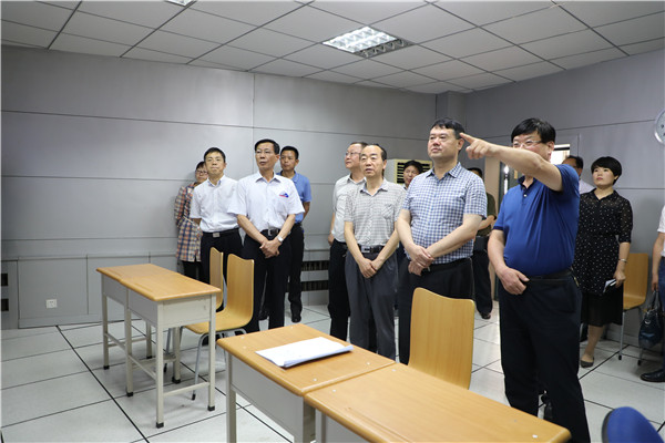 魏建锋一行首先来到保密室,检查了保密室工作及周边环境。随后,魏建锋一行来到我校,对试场、考场视频监控系统运行、英语听力播放质量等情况进行了深入检查。在多功能厅,魏建锋听取了我校王常劳校长对高考准备工作的汇报,并指出,高考事关考生未来,是涉及千家万户的大事,各相关部门要高度重视,严格按照高考的操作流程规范操作,为服务考生做好各项工作,创造一个良好的考试环境,确保整个高考工作的顺利进行。