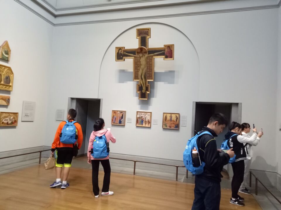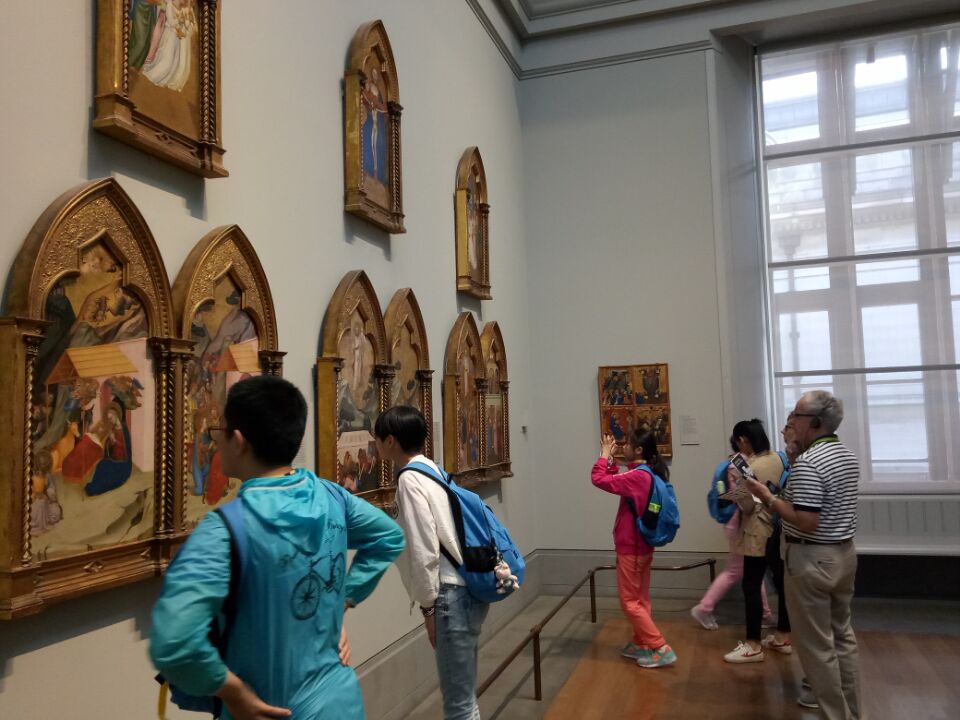 从远远望见,到靠近一些,再到站在她身边,我无法不惊叹她的庄重,典雅,和那在空气中散发着的艺术气息。Come to The National Gallery,跨进大门,我似乎能感受到那无国界的艺术正拥抱着我,感染着我的心灵。梵高,达芬奇,弗雷德里克·莱顿……正一步一步走向我,我不得不抬起头来,用敬仰的眼光望过去,久久的,久久的,最后留下的只有那于震撼的感叹。