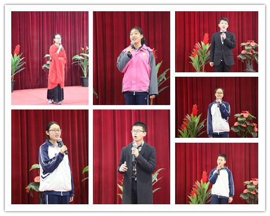 此次比赛由各班选出的学生评委进行评分,根据比赛规定,每位选手去掉一个最高分和一个最低分后,得出的成绩即为该选手的最终成绩。演讲赛中,15位选手在台上展示了不俗的实力。初三5班的刘子暄同学以亲切感人的语言将自己与读书的故事娓娓道来,字正腔圆、感情真挚。初三10班的吴子昂同学则通过深刻的思考和富有激情的演说,说出了追求自由的心声和梦想。同为初三10班的祝文倩同学,身穿一袭红色汉服,将古代南京的故事讲述出来,将同学们引入了对于古代中国的美丽幻想中。初三7班的朱伟刚同学用饱含深情地语言讲述了自己从书中寻找诗与远方的故事。整场比赛气氛热烈,赢得了同学们的阵阵掌声。经过评选,刘子暄同学与吴子昂同学获得一等奖,杨岚森等5名同学获得二等奖,黄奕瑄等8名同学获得三等奖。董蓉老师宣读了“读书小达人”与演讲赛获奖名单,王联科主任、李玉霞副主任、方凯副主任为获奖同学颁奖。