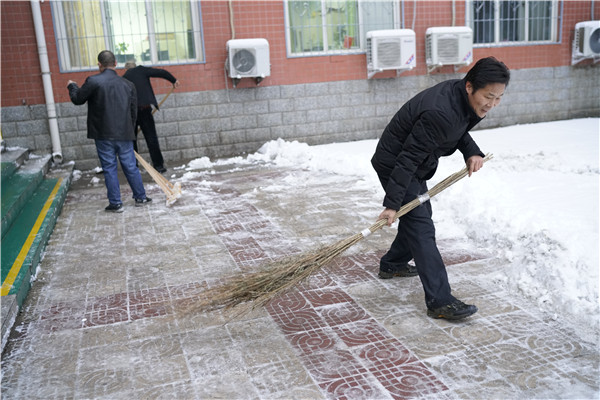 雪大路滑隐患多 校园除雪保安全