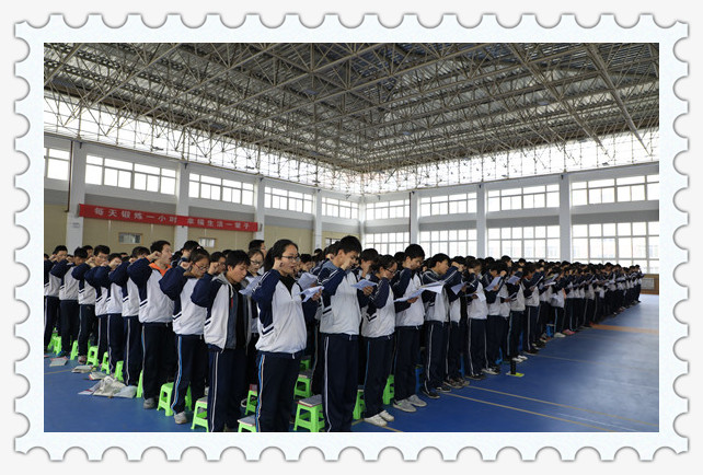 “百日拼搏,一朝圆梦。捷报飞传,名题金榜。奋战一百天,让雄心与智慧在六月闪光。奋战一百天,让飞翔的梦在六月张开翅膀。我们定不负父母的期盼!不负恩师的厚望!不负学校的培育!不负青春的理想!信心百倍!斗志昂扬!全力以赴!铸我辉煌!”全体初三学生和教师分别对中考做出了最庄严的承诺。