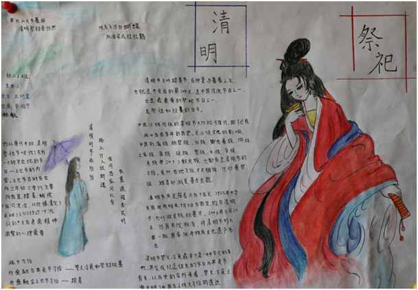 4月5日,我国法定节假日——清明节,是中国四大传统节日之一。清明,本作为一个节气,后来融合寒食、上巳等节日习俗,扫墓、祭祀、踏青等活动便成为人们代代相传的习俗。为传承我国传统文化,培养青少年的感恩情怀、创新思维和实践能力,我校初中部积极组织学生绘制清明节手抄报。大家广泛参与、集思广益、用画笔和文字,书写清明的节日传统,表达自己对春的期盼!