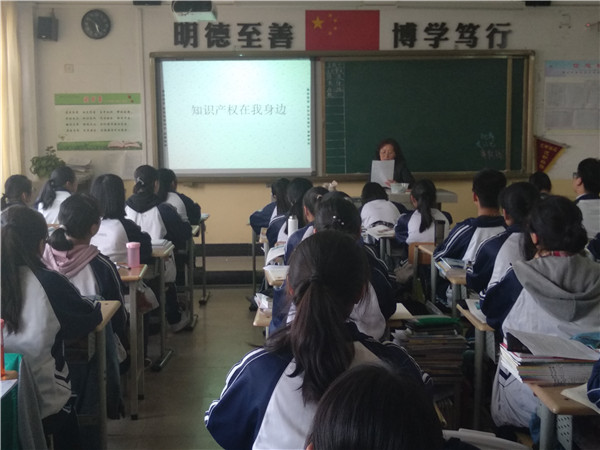 班会课上,从“知识产权的作用”、“我国知识产权法”、“怎样申请发明专利”、“如何开展维权”等四个主题入手,班主任以通俗易懂的方式讲授了知识产权的重要性,并以多个事例来让学生们了解了我国有关知识产权的法律法规和身边的知识产权相关知识,让学生自觉树立起保护知识产权的行为意识和自觉履行“拒绝盗版,从我做起”的责任意识。
