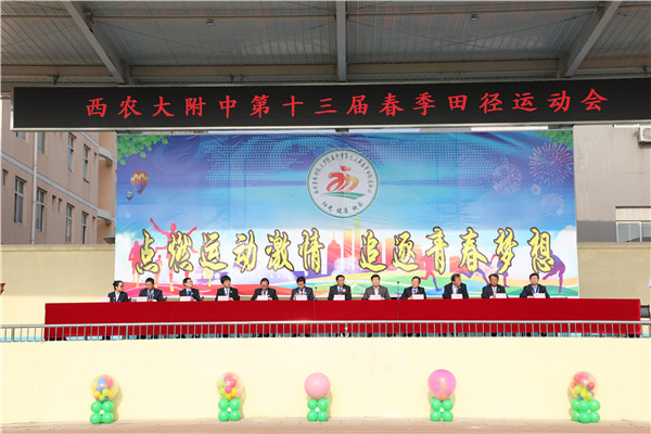 4月26日上午,我校在田径场举行第十三届春季田径运动会。校长王常劳宣布运动会开幕,党总支书记韩党卫致开幕辞。杨陵区教育局督导室主任马喜林、我校副校长张书民等校领导出席开幕式,副校长刘杰主持开幕式。