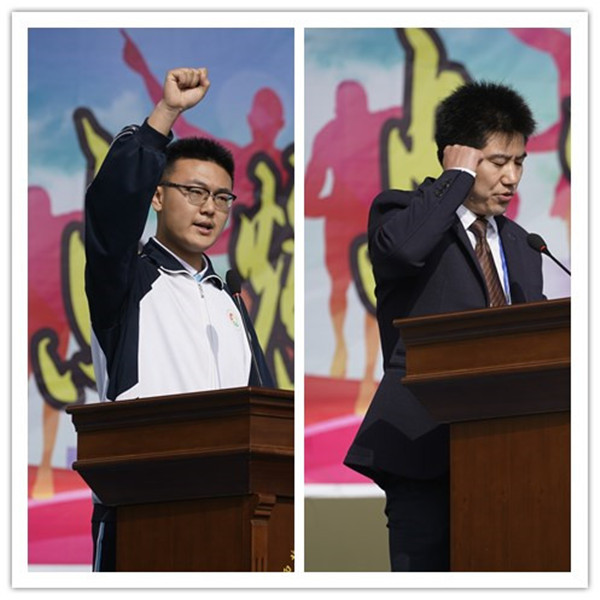 韩党卫书记在开幕式致辞中指出,2018年是西农大附中具有里程碑意义的一年,我校即将进入陕西省示范学校的行列。在两年的创建过程中,我校在办学理念、发展规划、育人体系、课堂改革、队伍结构、基础设施建设等方面取得了实质性进展,社会认同感空前高涨。他希望,同学能发扬体育精神,勇攀高峰、自我完善,做一名合格的附中学子。运动员代表梁佳乐、裁判员代表韩郑文在开幕式上郑重宣誓。