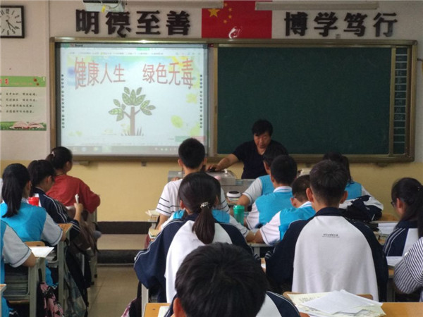 主题班会上,班主任充分利用多媒体设备播放禁毒教育宣传片和讲述新闻报道中的真实事例,并向大家展示了毒品的种类,讲述了毒品的危害。让学生知道青少年吸毒的原因及易染毒渠道,毒品违法犯罪及其处罚,掌握远离、拒绝毒品的方法与技能。