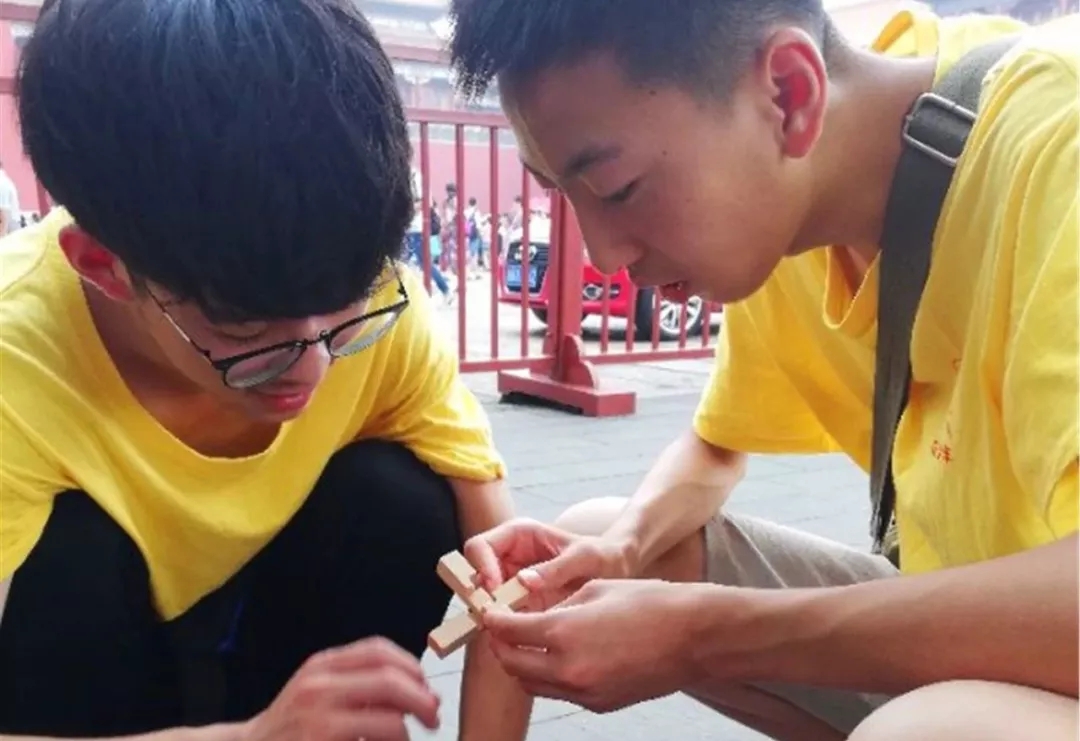在专业建筑老师现场指导下,同学们分工合作,利用所学的榫卯结构搭建“内金水桥”,了解古代建筑中的奇妙结构,并且学习了宫廷礼仪,了解皇家礼仪与规制。
