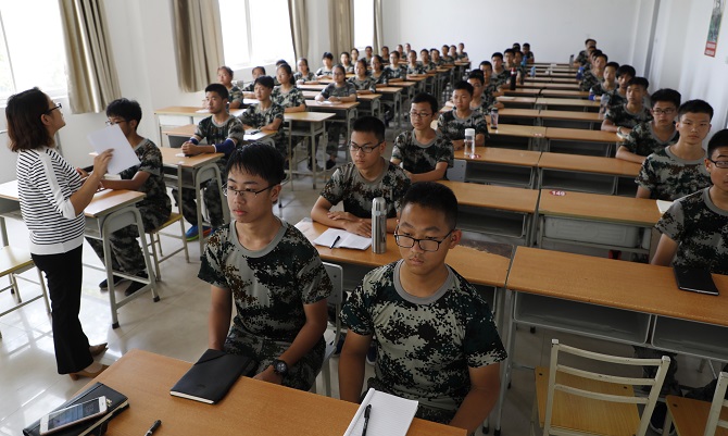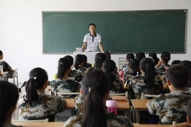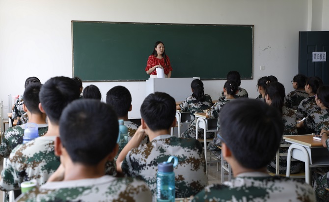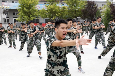 今天是军训的第四天,秋高气爽,适宜练兵,今天的训练内容是表演方队的训练,初一新生被分为两个方队,女生是国学操方队,男生是搏击操方队。在方队训练中,女生的国学操训练,动作柔美,整齐划一,男生的搏击操方队,也不甘落后,气势如虹,每个动作都刚劲有力,尽展男子汉保家卫国之气概!在今天的训练中,孩子们的脸上多了些笑容,少了些紧张,多了份坚强,少了份娇气。在这四天的军训生活中,孩子们的稚气在逐渐褪去。在逐渐学会战胜自我,学着成长。