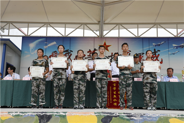 会上,军训基地何银平主任宣读了对优秀士兵及先进连队的表彰决定,我校校领导为获奖人员颁奖。刘杰副校长代表学校为军训基地颁发锦旗。