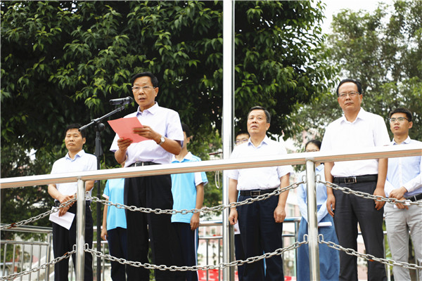 9月3日上午,我校全体师生齐聚田径场举行新学期首次升旗仪式。升旗仪式由韩党卫书记主持,王常劳校长致辞。