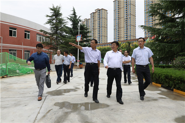 在王常劳校长、韩党卫书记等陪同下,吴普特校长查看了附中新建的田径场、篮球场和在建的校园文化建设项目,对附中校园环境的美化表示赞赏。