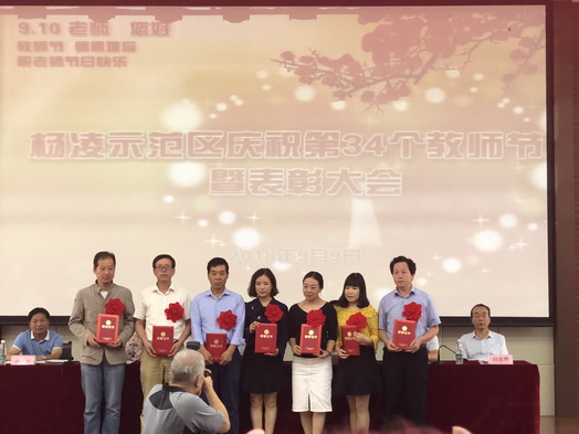 9月9日,杨凌示范区在杨陵高级中学召开2018年教师节庆祝表彰大会,区内600余名教师代表参加大会。会上表彰了示范区2018年“两考”工作先进集体和57名教育系统先进个人,并授予33名教师“示范区教学能手”称号。