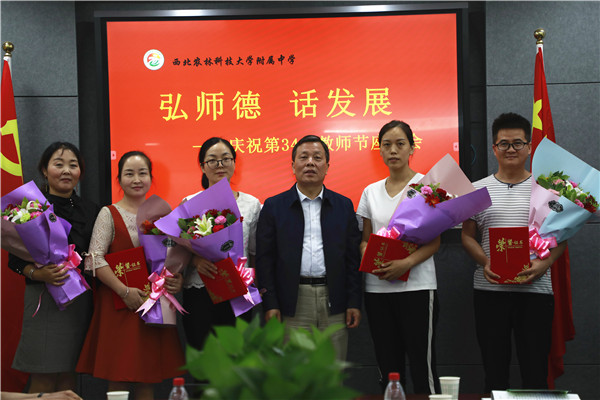 会上,表彰了杨亚利等15名“先进个人”和王旭等3名“先进工作者”,王常劳校长、韩党卫书记、张书民及刘杰副校长为获奖教师颁奖。