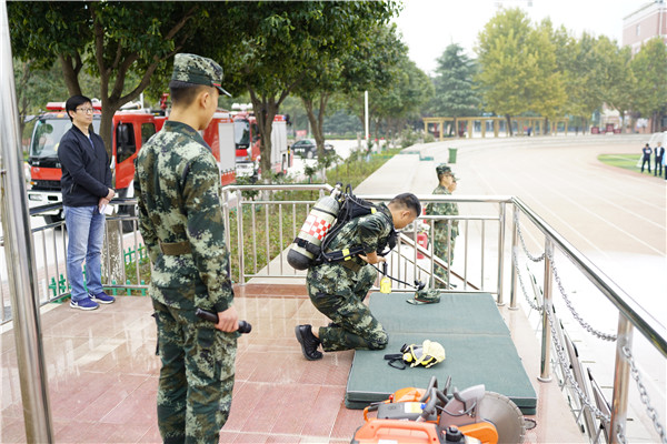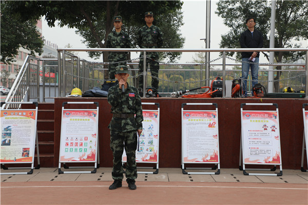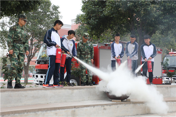 集合完毕后,消防支队副支队长史伟利、参谋长杨刚明等现场为师生讲解了灭火器及各种消防器械的使用原理、使用方法、灭火知识以及相关的注意事项,并亲自操作演示。在认真听讲及观摩后,十余名学生现场演练了灭火器的操作,亲自体验了现场灭火的过程。