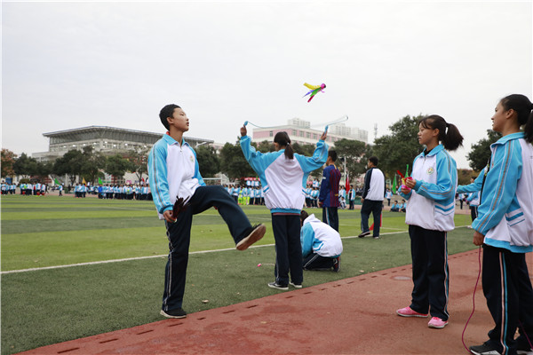 此次球类运动会为期两天,包括篮球、足球、定点投篮、羽毛球、乒乓球、跳小绳、踢毽球等项目,初一——高二等五个年级学生参加比赛。