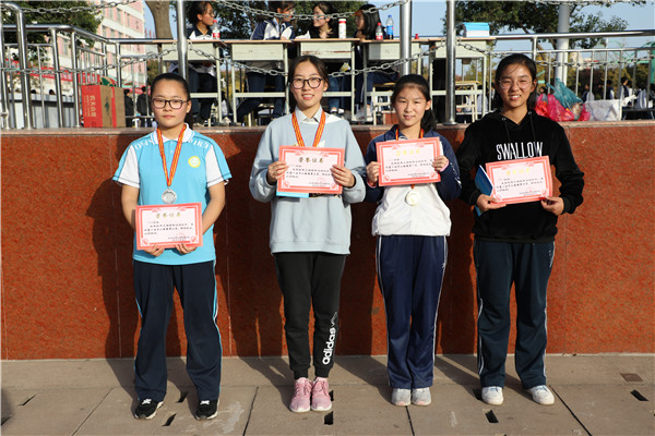 10月26日,我校第三届球类运动会圆满结束。本届运动会历时一天半,来自全校五个年级的同学进行了7个项目的比赛。经过激烈角逐,初一6班、初二5班获得足球项目的冠军;初三8班、高一4班、高二6班分获篮球项目的冠军。李卓等4名同学分获羽毛球赛冠军,赵静雯等6名同学获乒乓球比赛冠军,陈怡等3名同学获定点投篮冠军,杨子恒等10名同学获跳小绳比赛冠军,任思瑶等10名同学获踢毽球比赛冠军。
