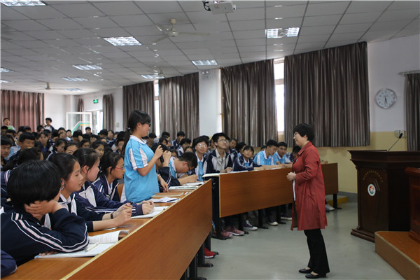 金花老师的讲座风趣幽默、富有哲理,赢得了在场学生一阵又一阵的掌声。在互动环节,学生们纷纷举手发言,参与热情高涨。初三9班的杨旭东同学说:“金老师的讲座让我明白很多道理,我会按照金老师教给我们的方法调节心态,积极面对考试。”