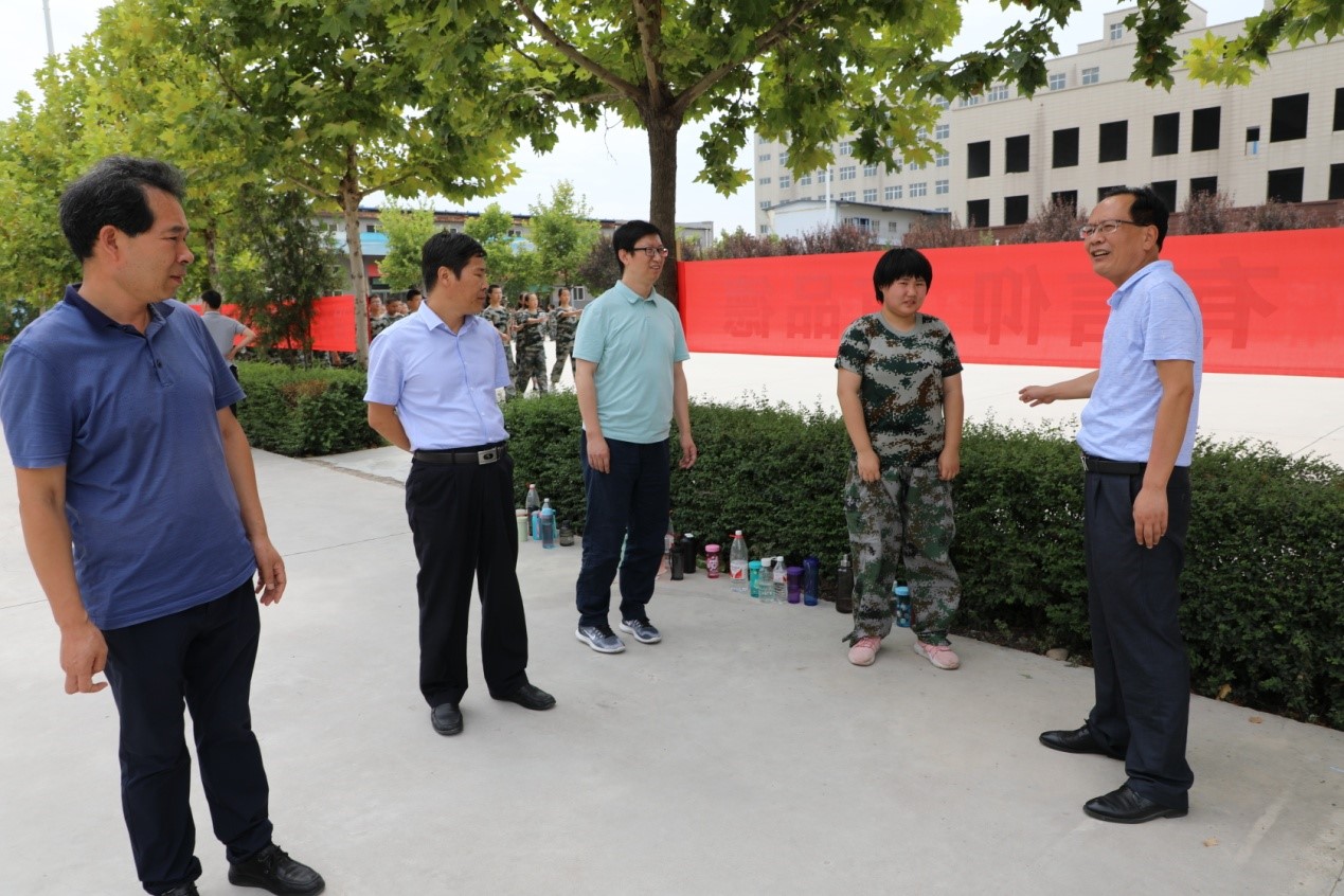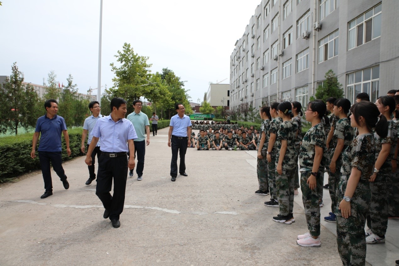8月22日,我校韩党卫书记、刘杰副校长、陈军副校长等校领导来到军训基地,看望慰问班主任及参训新生。