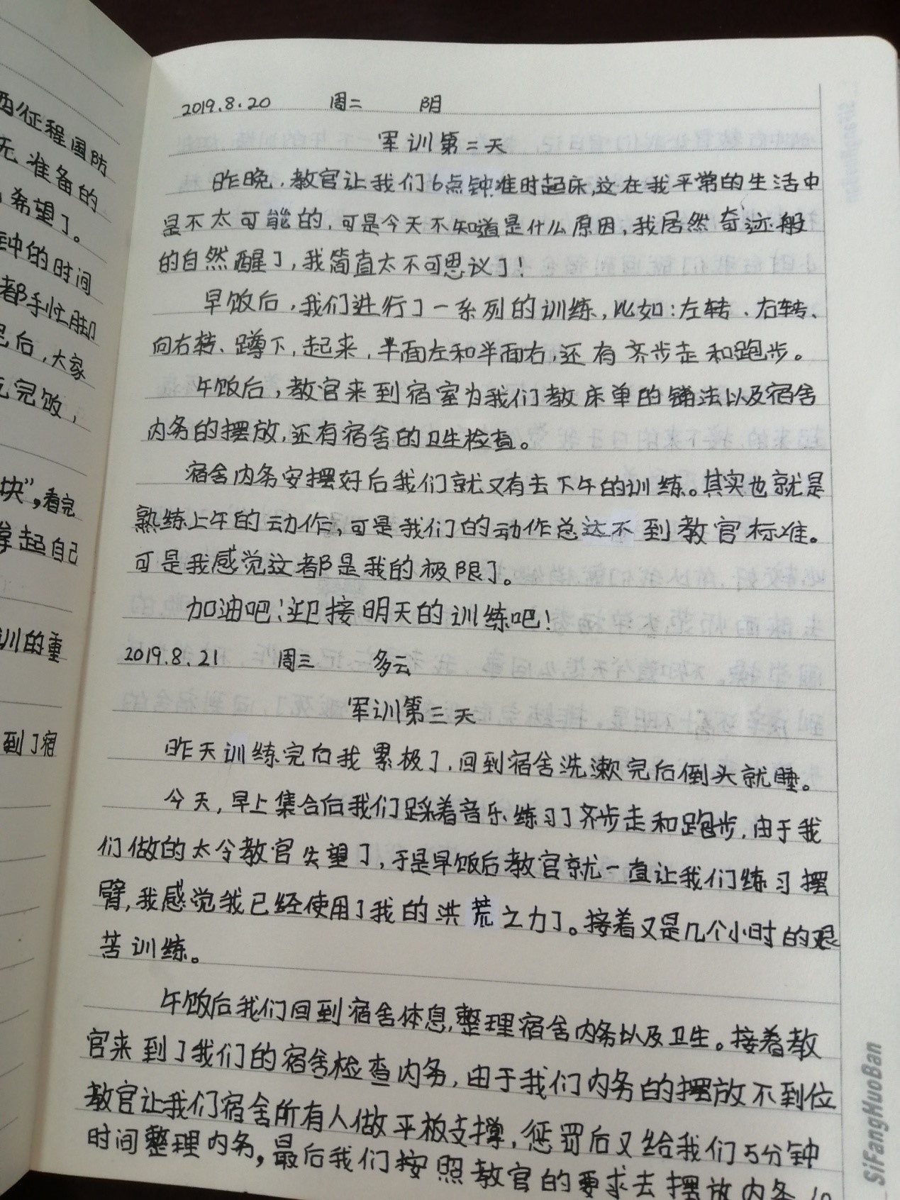 军训快接近尾声了。在这段日子里,他们有痛苦,有辛劳,但更多的是收获,是成长。正如一位同学在日记中写道:“在以后的日子里,我会愈战愈勇,不言弃。加油吧!少年!”