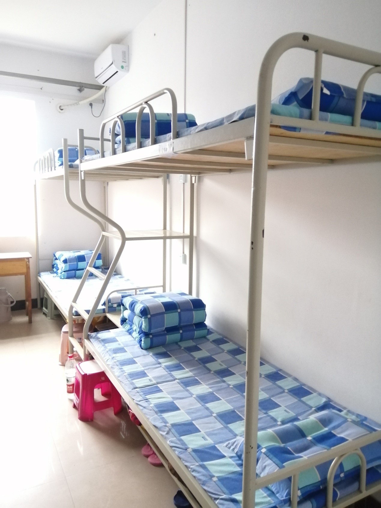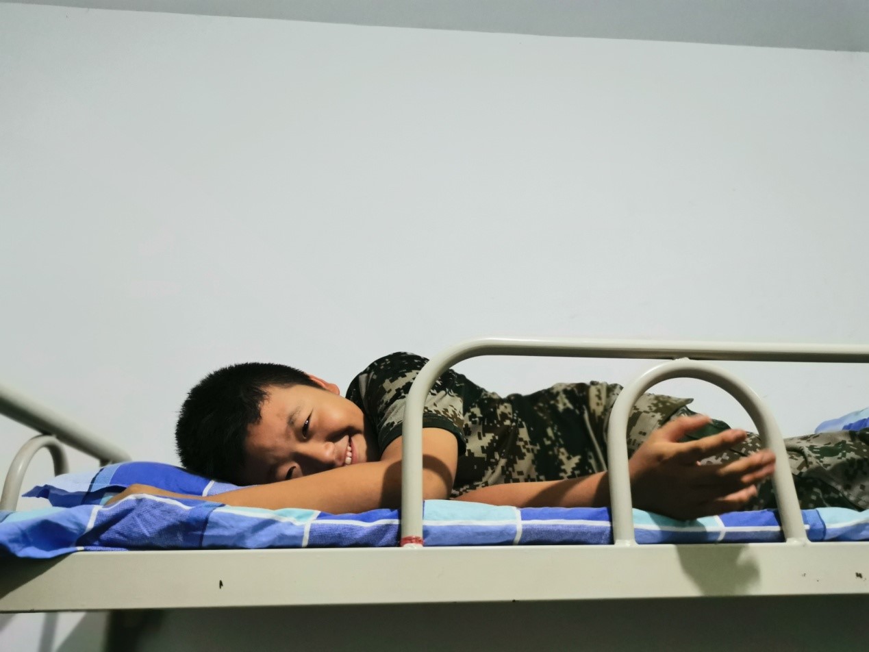 除了训练场上的顽强拼搏,内务整理也是训练中不可缺少的一部分。对于不常做家务的同学来说,如何叠出像“豆腐块”一般的被子,是一个大的挑战。有的同学叠的像上短下长像“坦克”,有的叠的像“豆腐渣”,有的鼓的像“馒头”。在教官们的耐心指导下,同学们叠的被子终于变得有模有样。学会叠被子的同时,同学们也都懂得了父母的辛劳,变的更懂事了。