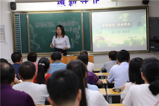 为了帮助初一新生尽快适应新学校,顺利完成小学到初中的身份转变,按照学校既定安排,8月30日晚7:00,初一年级在各班级主持召开了家长会。