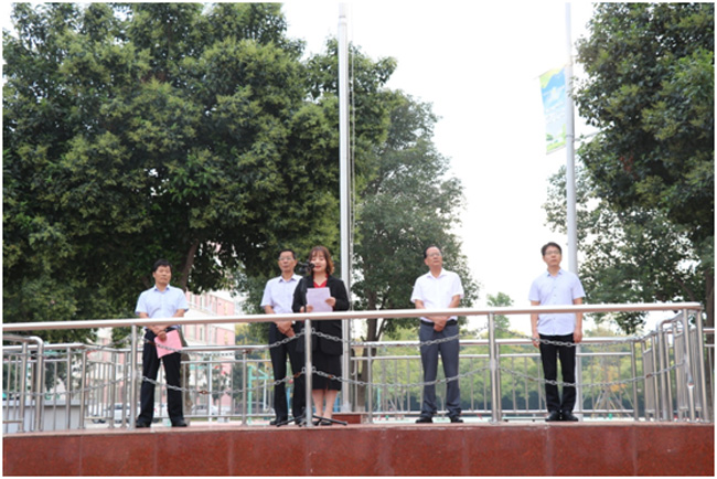 9月2日,我校3000余名师生在田径场隆重举行了新学年首次升旗仪式。韩党卫书记主持仪式,王常劳校长作新学年致辞,刘杰副校长介绍初一高一招生情况,新教师代表高嘉蔚发言。