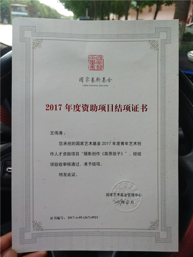 近日,国家艺术基金管理中心公布了国家艺术基金2017、2018年度青年艺术创作人才资助项目(美术类)结项验收结果,我校教师王伟涛的摄影作品《高原孩子》成功通过结项验收。