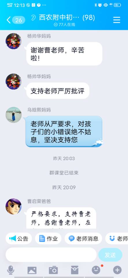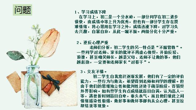 家长会上,班主任首先向家长们通报了本次月考情况,并将表现优秀同学的经验分享给各位家长。