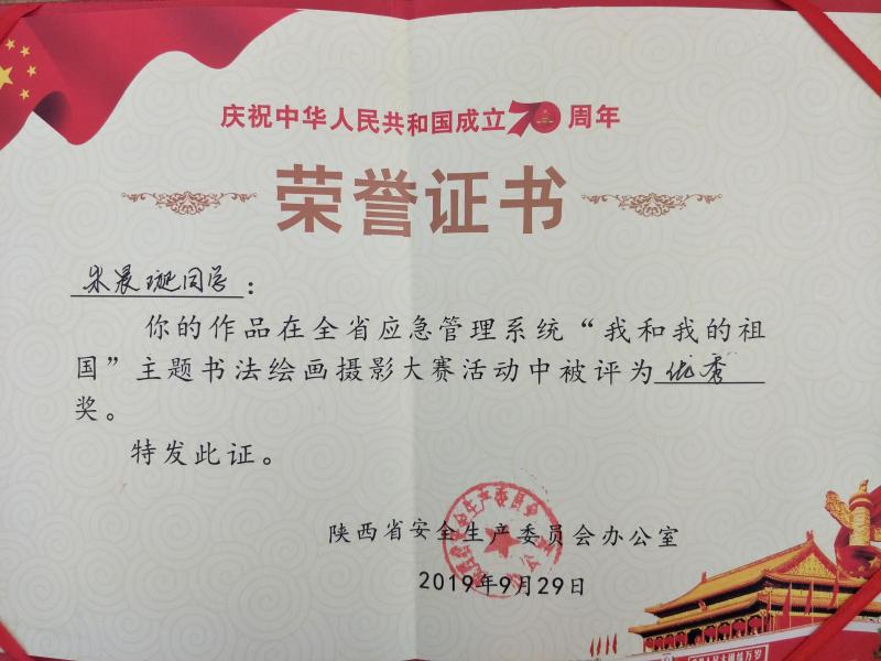 “我和我的祖国”主题书法绘画摄影大赛由陕西省应急管理厅主办,省著名人物档案协会和西安新城西部信息与文化研究所联合承办。比赛分书法类、绘画类、摄影类三大项。我校组织学生参加此项比赛,积累了丰富经验。比赛中,我校选手们展示了扎实的艺术功底,得到了评委的肯定,最终获得佳绩。
