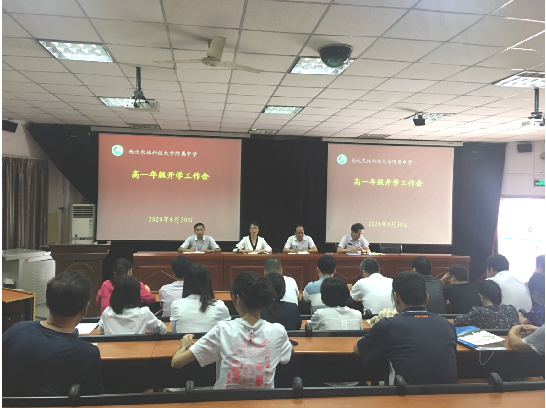 2020年8月30日下午,我校召开高一年级开学工作会,会议由高中教务处景会霞主任主持,刘杰副校长、教育处徐恒明主任、教务处尚新兵副主任和全体高一教师参会。