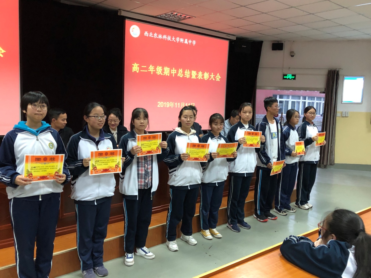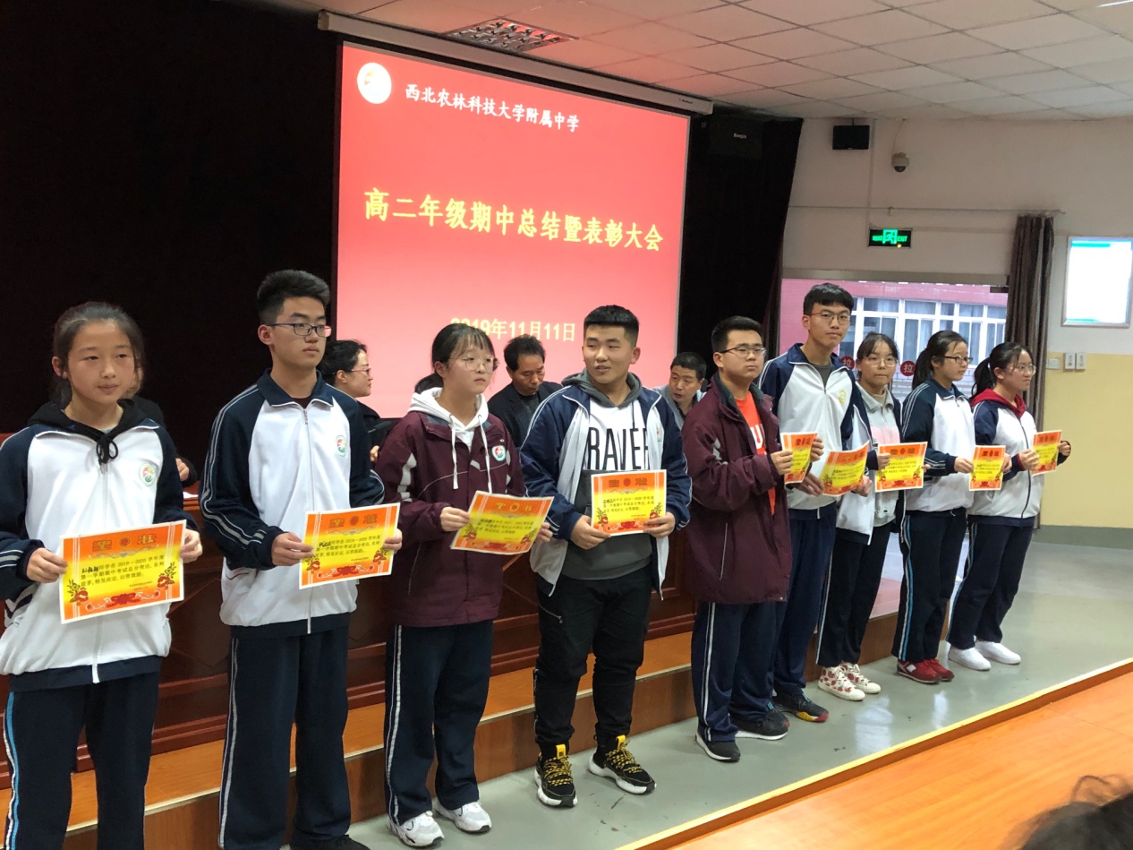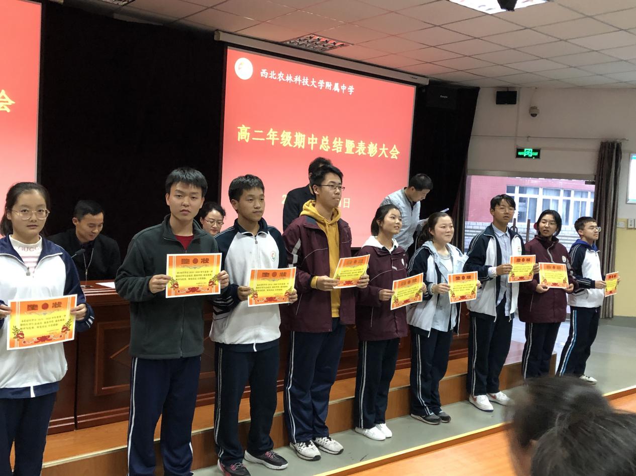 教育处徐恒明主任和年级组长王西武老师宣布了受表彰的学生名单,与会领导为获奖同学颁奖。此次期中考试中获得总分第一名的代君政同学作为优秀学生代表在大会上分享了自己的学习经验,认为在日常的学习中,要保持一个良好的心态;其次,要制定自己的学习目标,找到适合自己的学习方法。徐鹤瑞同学作为进步生代表分享了自己的学习经验,告诉同学们要确立适合自己的学习目标,分步完成;要在平常的学习中养成良好的学习习惯;注重知识的积累,定期复习,独立完成作业。只要脚踏实地就一定能获得进步。