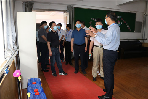 6月19日,省交通运输厅鲁会劳巡视员、省道路运输中心曹鑫副主任、省地方病防治研究所王耀斐副主任医师一行来我校检查疫情防控工作。示范区管委会董立民副主任、示范区教育局张少文局长等领导陪同检查。