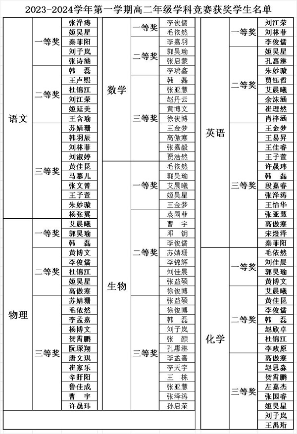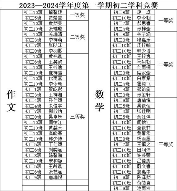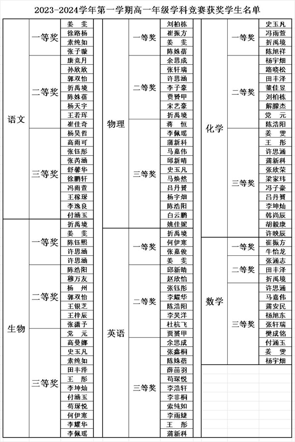 初中竞赛包含作文、数学,高中竞赛包括语文、数学、英语、物理、化学、生物。为保障此项活动顺利进行,教务处精心制定了竞赛方案,备课组及班主任具体组织实施。同学们经过赛前充分准备,赛中认真审题,细心答题,展现出了我校学子深厚的学科素养和优秀的学习习惯。最终,众多学子脱颖而出,喜获佳绩,特此祝贺。